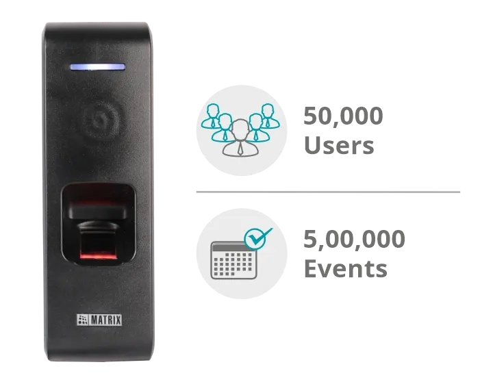 Fingerprint Template Capacity up to 1,00,000 in 1:1 Mode