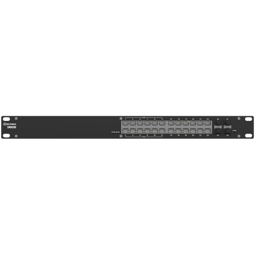 The SWM280 is a powerful L2 managed switch with L3 features for advanced network control. Designed for high-performance connectivity, this 24-port switch combines 12 PoE+ ports, 12 Gigabit Ethernet ports, and 4 SFP ports. The PoE+ supply up to 30 W per port and a total power budget of 300 W. The SWM280 supports PROFINET & other industrial protocols, enabling flexibility over management and power supply.