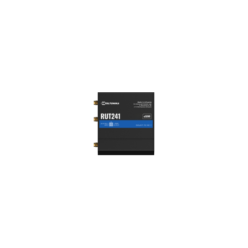 The RUT241 is a compact, industrial-grade cellular router designed for reliable and versatile connectivity in IoT and M2M applications. RUT241 features rugged design, multiple connection interfaces including 4G LTE, Wi-Fi, and two Ethernet ports, as well as full compatibility with Teltonika’s Remote Management System (RMS). With support for automatic WAN failover and advanced RutOS software, the RUT241 enables continuous connectivity and solution automation through its digital inputs and outputs. RUT241 includes eSIM™ functionality based on the SGP.22 architecture, allowing up to seven eSIM™ profiles alongside a physical SIM card—easily managed via WebUI and RMS—offering even greater flexibility for global deployment. A non-eSIM™ version is also available - see the order code for details.