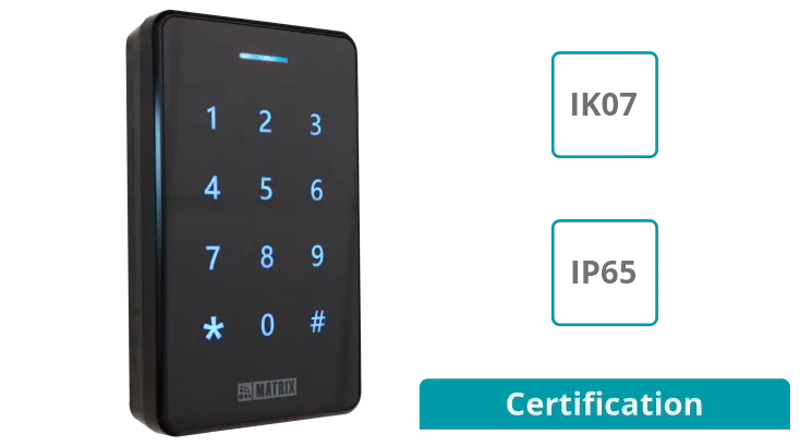COSEC ATOM Access Control Reader boasts vandal resistance with an IK rating, ensuring its durability against rough handling and providing protection against malicious acts