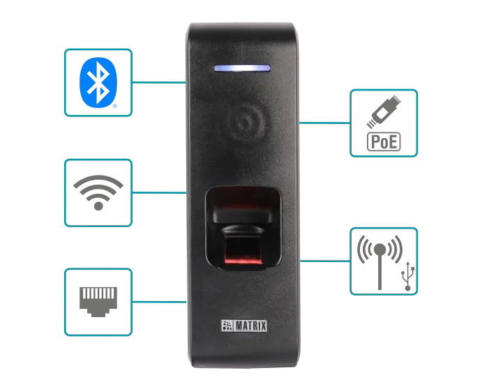 | Credential Support | Bluetooth® (BLE), Fingerprint, and RFID Card |