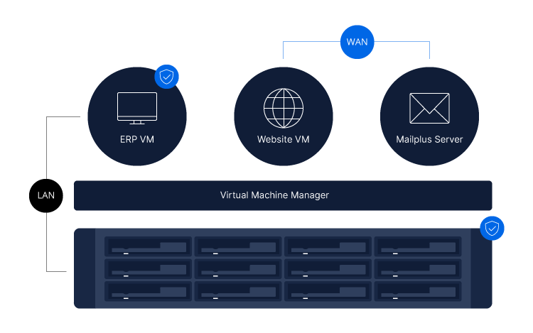 Synology Virtual Machine Manager (VMM) is a hypervisor for Windows® and Linux® VMs or Virtual DSM, a virtualized version of DSM. Use your Synology device as an alternative host for VMs to quickly recover services following failure or run failover copies of PCs, servers, and VMs created with Active Backup for Business (ABB), DSM’s data protection tool for physical and virtual environments.