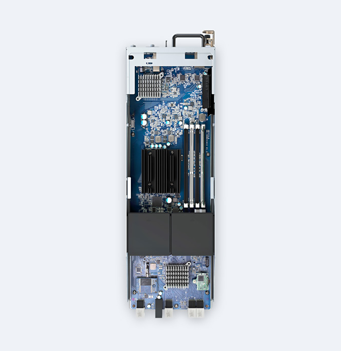 Each controller board features four DDR4 ECC UDIMM slots for expandability and improved system performance.